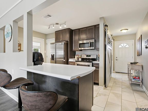 Looking for a modern home in a quiet neighborhood with a fenced yard? Check out this beautiful house in Old Jefferson. The exterior features painted brick, a well-kept lawn, and extra space for additional landscaping. Inside, you’ll find laminate flooring throughout. The dining area has been converted into a home office complete with a stylish barn door, high vaulted ceiling, and a large window that lets in plenty of natural light. Plus, the energy-efficient windows help reduce heating and cooling costs. The kitchen is modern and practical, featuring gray cabinets and stainless steel appliances like a smooth-top range, microwave with hood vent, and dishwasher. It also offers easy access to a pantry and a covered carport. The living room feels spacious and bright with its vaulted ceilings, a corner fireplace, and several windows that overlook the backyard. The home has a split floor plan for added privacy. The primary suite is on one side and includes a private bathroom with two sinks, a tub and shower combo, and a walk-in closet. On the other side, two large bedrooms with plenty of closet space share a bathroom. Conveniently located near Airline Highway and the interstate, this home offers both comfort and easy access to local amenities.