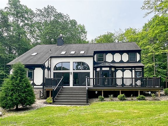 Welcome to this exceptional European-style estate, nestled in the peaceful and sought-after Carsten Woods community, just 14 minutes outside Medina. Boasting 4,360 square feet of elegantly designed living space, this waterfront property offers unparalleled luxury, complete with breathtaking lake views and a private dock. You'll be captivated by the grand 22-ft high stone fireplace that serves as the centerpiece of the open-concept living room. The main floor features beautiful hardwood floors and soaring high ceilings, creating a bright, airy atmosphere perfect for both relaxed family living and sophisticated entertaining. The recently renovated kitchen is a chef's dream, equipped with top-of-the-line appliances, sleek countertops, and modern cabinetry. The adjoining dining area offers stunning views of the lake, making it the perfect setting for meals or intimate gatherings. The luxurious master suite features a large, modern spa-inspired bathroom with a spacious walk-in shower, dual sinks, and elegant vanities. Enjoy a serene view of the lake creating a peaceful retreat to start or end your day. The bathroom’s generous size adds to the sense of luxury, making it the perfect sanctuary for relaxation. Four additional bedrooms provide ample space for family or guests, each offering comfort and style. The finished walk out basement is an entertainer's paradise, complete with a custom bar, and endless possibilities for a home theater, game room, or personal retreat. Outside, the beautifully landscaped grounds have been meticulously maintained, offering a private oasis with direct access to the serene lake. The dock invites you to enjoy boating, fishing, or simply relaxing by the water’s edge. This is a rare opportunity to own a home of such quality and character, with every detail thoughtfully renovated for today’s lifestyle. Live the lifestyle you've always dreamed of in this unparalleled lakeside estate. Call today to schedule your own private tour.