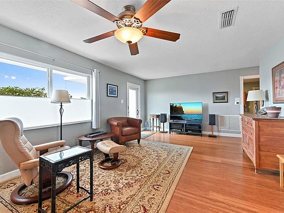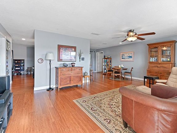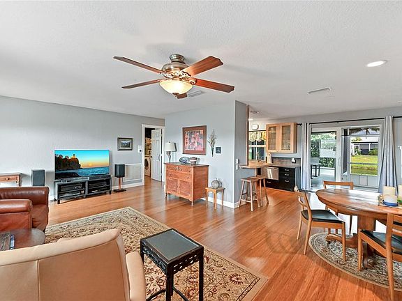 Seller relocating out of State forces sale of this charming beautifully maintained home features stunning canal views equipped w/modern updates making it the perfect place to settle into serene lifestyle. New roof in 2025 flat roof 2023 Impact Windows except 2nd bdrm has shutters Bamboo Wood Floors Wheelchair Accessible Home designed kitchen w/pull-out drawers in cabinets porcelain counters snack counter cooktop(no oven) s/s pull out dishwasher drawer & pantry w/pull-outs Primary bdrm offers walk-in closet wheelchair accessible primary bath w/spacious shower guest bdrm has walk-in closet Fam Rm includes desk A/C replaced 2020 duct work & insulation in 2021 Spacious laundry rm w/Bosch washer/dryer Assn says 55+ Don't miss this move-in ready accessible living home withTrue Pride of Ownership Maintenance fee covers lawn care, irrigation water but no shrubs. Sprinkler systems runs off canal. Half of the garage converted in spacious laundry/utility room with additional garage storage. Rheem Hybrid 50 gallon water heater in laundry room