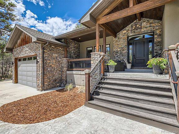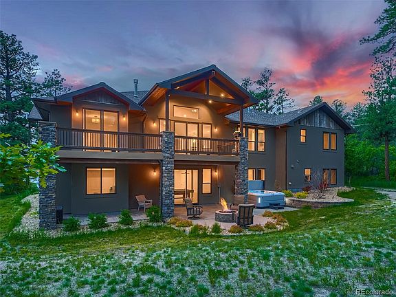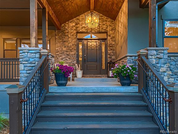 Welcome home to this exceptional custom ranch home, nestled among the pine trees in the coveted Sage Port neighborhood of Larkspur. This stunning property offers peace and privacy, yet is only minutes to Downtown Castle Rock's vibrant restaurants and shopping! Take advantage of nearby hiking trails or spend the day at the award-winning Bear Dance Golf Club, home of the Colorado PGA and ranked as CO's best and most challenging course! Watch the deer meander and the hummingbirds sing from your covered front porch. Come inside to experience the warmth of the wide-plank hickory wood floors and spaciousness of this open floor plan! The Great Room draws you in with its grand stone fireplace, vaulted ceilings, and views of the tall pines and covered Trex deck from your floor-to-ceiling windows. This huge chef’s kitchen boasts two kitchen islands, tall maple cabinets and top-of-the-line Jenn-Air appliances. After a day at the farmer’s market or nature walk, a luxurious retreat awaits in your main-floor primary suite with private access to the deck, a soaking tub, steam-sauna shower, and a deluxe walk-in closet system. A den, dining room, two bedrooms, full bath, and laundry room complete the main floor. The entertainer’s walkout finished basement features a family room/gaming area, wet bar with built-in quartz game table, bonus space/workout studio, two additional bedrooms, full bath, and a huge storage room – WOW! Soak your worries away in the newer hot tub or cozy up by the fire pit – perfect for chilly days ahead! An Invisible Fence keeps your furry loved ones close in sight. Lucky for you, this 2015 built home has been well cared for and has $100K in recent updates (see supplements for special features/upgrades). Smart home - app controls all surround sound, lighting, window coverings, door locks! So close - 12 min. to Castle Rock, 25 min. to South Denver or Co. Springs! This is your opportunity to own your forever home in Larkspur – one of the last hidden gems around!
