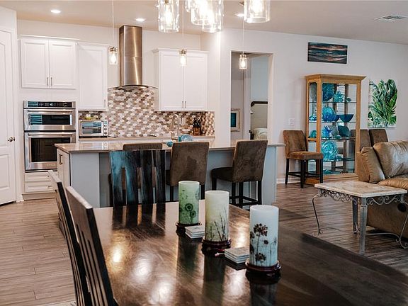 You will be blown away by this stunning 2020 built home with more upgrades than we can list! Not only does this home include 4 bedrooms, 3 full bathrooms, a screened porch, a large loft area, and a beautiful open concept kitchen/living/dining room, but it also includes an extended 2 car garage perfect for your golf cart to drive to the amazing Epperson lagoon! As you enter you find 2 guest bedrooms and full bathroom with upgraded tile, vanity and countertop. The true split floor plan is perfect for buyers who need space and privacy. The great room was extended for additional living space and includes a large slider to the screened porch and yard with no backyard neighbors. The kitchen boasts ivory cabinets, quartz counters, a wall oven and separate cooktop, and a stunning backsplash. The owner's suite is on the main level and includes a large bedroom, upgraded double vanity, fabulous walk in shower with upgraded tile, and large walk in closet. They even upgraded the laundry room! It includes upgraded cabinets, a sink/folding area, and an under the stairs storage closet. Upstairs you will find a huge loft area, 4th bedroom, and full bathroom with the same tile and vanity upgrades. The seller added cabinetry for a kitchenette, but your options for how to utilize the loft area are endless. If the house isn't amazing enough, all of this includes the resort style amenities of Epperson! With the 7 acre lagoon style pool with beach area and bar, you will be enjoying Florida summer in style! Don't wait another 9 months to build new- schedule a showing and make this stunning house your new home. You do not want to miss out on this one!