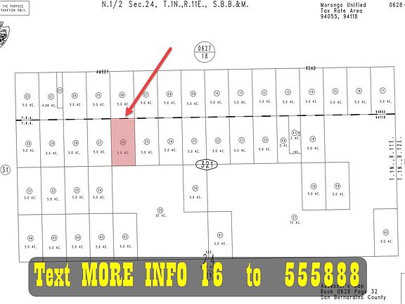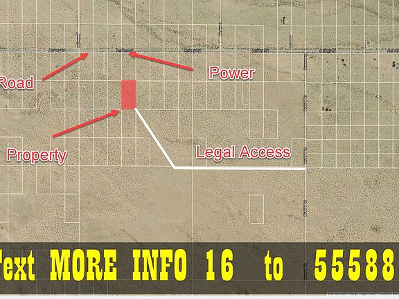 IMPORTANT Call or text me (the owner) directly. Otherwise your inquiry will go to an agent that DOES NOT have details on this listing. If you use the email option make sure to select 'owner' . MORE INFO For more info text MORE INFO 16 to 555888 FINANCING As low as $149 Per Month DESCRIPTION This is a fantastic 5 acre property near Joshua Tree National Park in Twentynine Palms, CA. This property is bordered by BLM land to the south giving you extra space to explore and use. Need room to spread out and have your own space? You just found it and at an unbeatable price! This is the best priced property in the area. It would be a great place to camp or build a small cabin. The property is located in Wonder Valley just off Amboy Rd. Power is nearby on Amboy Rd. There is also endless sun available if you want to go solar. Need more supplies? It's only 30 minutes to the Walmart Supercenter and Home Depot in Yucca Valley. Joshua Tree National Park entrance is only a short 30 minutess down the road. Priced less than half of similar 5 acre lots in the area. This property won’t last long at this price! Grab it before someone else does! DETAILS Street Address - Amboy Rd City - Twentynine Palms State - CA County - San Bernardino Zip - 92277 Size - 5 Acres Parcel Number - 0628-321-26-0000 Title - Free and Clear Estimated Property Tax (Yearly) - 114.86 Center GPS - 34.162657, -115.785837 Elevation - 1255 ft Terrain - Level Zoning - Rural Living (Residential) Access - Off Road Power - Power Lines Nearby (700 ft) or Solar/Alternative Water - Would Be By Well Sewer - Would Be By Septic/Alternative System Phone - Cellular/Satellite RV Living - Check with County Legal - Abbreviated Description: W 1/2 SW 1/4 NE 1/4 NW 1/4 SEC 24 TP 1N R 11E 5 AC