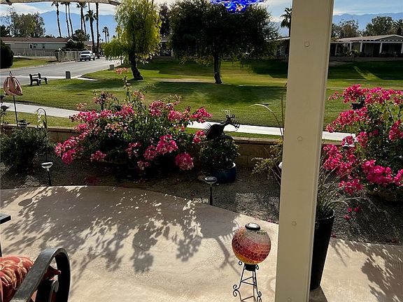 Want to live in the lovely gated Ivey Ranch Country Club, a 55+ Golf Community conveniently located adjacent to I-10 offering easy access to all the Coachella Valley including the new Acrisure Arena. now is your chance. You will enjoy this wonderful community and all it has to offer, including low HOAS and golf opportunities. This recently renovated 3 bed 2 bath manufactured home is on a permanent foundation and has been meticulously maintained. This is an entertainers dream house with a large covered patio that over looks the golf course. The home has luxury vinyl flooring with an open floor plan. The master bedroom has direct access to your patio so you can enjoy your morning coffee or evening beverage and sunset views. This home is waiting for its new owners to make new memories. This is one of the largest lots in the community with incredible views of the golf course and a wrap around covered patio for all your entertaining year round. The community has a golf course, multiple pools and spas, seasonal restaurant, club house, card room and is gated!! This beauty will not last