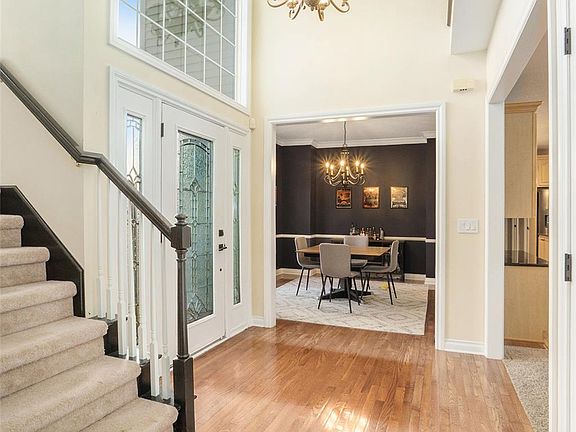 Step into a bright two story foyer with a catwalk overlooking the beautiful entry and fire lit family room. Clerestory and transom windows that bathe the space in natural light, enhancing the home’s open, inviting feel. The main level showcases a cozy living room, a private office with double pocket doors, a formal dining room, and a spacious open concept. The eat-in kitchen includes granite counters, new black chrome appliances, large center island with cook top, dual ovens, and abundant cabinetry. The kitchen flows right to the extravagant Family room, complete with vaulted ceilings and floor to ceiling windows which is perfect for gatherings or curling up by the fireplace for a movie night. First-floor laundry room and half bath located next to the garage entry mudroom for convenience.