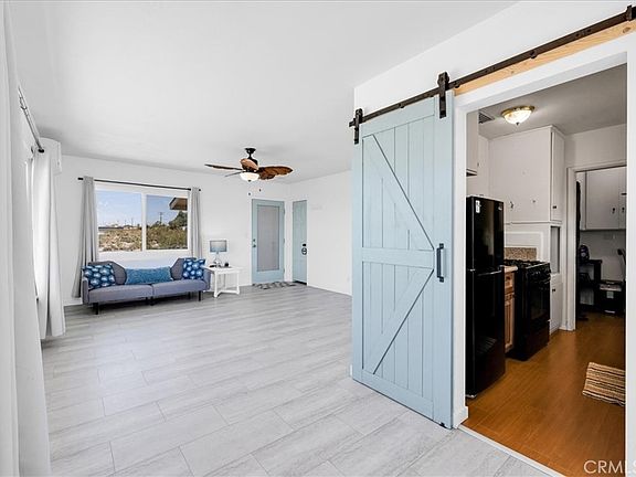 Amazing Deal! Located on over 1/2 an Acre, on a corner lot with a Detached Casita that is equipped with electric! This fantastic Home has a New Roof, New Dual Pane Vinyl Windows, Mini-Split Air Conditioning Units and More! Perfectly located near the East Entrance to the Joshua Tree National Park! A shaded, charming Patio welcomes all that enter. Beyond the frosted full-light French Door you will be delighted to find a sizable Livingroom with expansive view windows. The interior has been updated in cool tones throughout. New flooring has been installed. Its official fancy name is “Vatican Travertine Stone-look Life-proof/Waterproof Vinyl Tile” and it was specially chosen for its durable qualities and aesthetics. The windows have been upgraded with dual-pane vinyl windows, which is a huge bonus and energy saver! Mini-split Air Conditioning/Heat Pumps have been installed in the Livingroom and both Bedrooms for year-round comfort! Attractive sliding barn door offers separation from the Kitchen area and allows for zoned cooling and heating options. Granite countertops adorn the Kitchen, which offers more storage in the adjacent Laundry Room. Indoor Laundry is always a plus in the Desert! A convenient door leading to a covered carport is a bonus for unloading your car after shopping. The Bathroom has been updated in marble-look tile and backsplash surrounding the vanity. The bathroom is partitioned for privacy and convenience. Both Bedrooms offer ample space. The rear Bedroom has a huge walk-in closet with plenty of natural light. The rear Bedroom also offers a private entry onto a large, fully enclosed, screened patio at the rear of the home. Everyone loves a screened patio hang out! Behind the home is a detached stucco casita that is currently being used for storage but think of all of the possibilities for your own use! Make this your very own art studio, Yoga room, craft haven or workshop! Perfectly located only 3.2 miles to the Entrance Gate to the National Park, and only 1.2 miles to the Tortoise Rock Casino. If you have school-aged children, Palm Vista Elementary School is within walking distance, making it convenient in location. With so many bonuses, do not hesitate to call your Agent today!