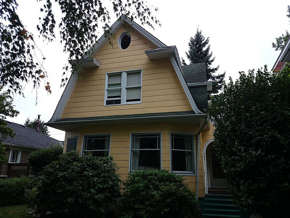 Charming 1906 Dutch Colonial Revival home set along quiet, tree lined street on Capitol Hill, across from historic Holy Names Academy. Completely remodeled in 2020 with new foundation, bathrooms, kitchen and addition of one bedroom garden apartment and detached one car garage. Established neighborhood has many restored beautiful homes.