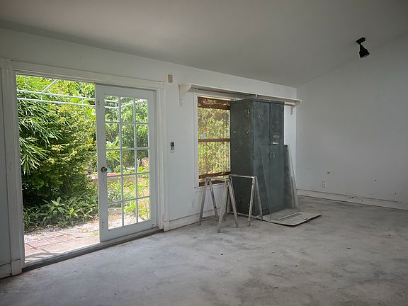 Beautiful artists studio with bank of northern light windows, skylights, and 20 foot ceilings. Perfect for visual artists, writers, and dancers. Set in a private garden in Flamingo Park neighborhood.