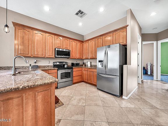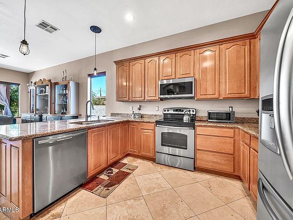 Centrally located, quiet Moon Valley street, no HOA. Solar nearly pays for the electricity! Gardener's paradise! Fruit trees, 19'x9' enclosed raised bed, three 4'x8' raised beds, irrigation. Bright, open split floor plan. Custom-built bar/ breakfast café. Slab granite countertops, upgraded Karastan carpet, and travertine and hardwood floors. A new queen size wall bed conveys - easily convert your office / craft room / fitness room to a guest room. Plus wired for surround sound, high-end First Impression Ironworks security screen doors, security system including cameras, garage cabinets, and a pre-paid solar lease that transfers at closing - offering minimal electric bills for the next 7 years!