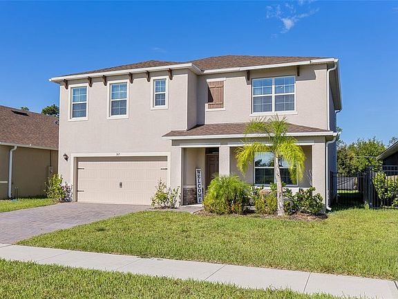 Experience resort-style living in this stunning 5-bedroom, 3-bathroom home located in the exclusive gated community of Riviera Bella East. This spacious residence offers over 2,600 sq. ft. of thoughtfully designed living space, combining modern elegance with everyday comfort. The first floor features an open-concept layout with a chef-inspired kitchen boasting granite countertops, stainless steel appliances, and a large center island with bar seating. The kitchen flows seamlessly into the dining and living areas, which open to a covered porch overlooking the fully fenced backyard, perfect for indoor/outdoor entertaining. A versatile flex room, guest bedroom, and full bath complete the first level. Upstairs, the expansive primary suite includes a spa-like en suite bathroom and walk-in closet. Three additional bedrooms, a second full bath, laundry room, and a spacious loft provide plenty of room for family, guests, or a home office. Garage equipped with Tesla charging capabilities! Riviera Bella East offers a truly elevated lifestyle with a resort-style pool, state-of-the-art fitness center, elegant clubhouse, and playground, all within a beautifully landscaped gated community. This home is available unfurnished or fully furnished as seen in photos please inquire for furnished rental rates. Don't miss the opportunity to live in one of the area's most desirable luxury communities. Schedule your private showing today!
