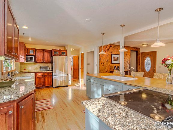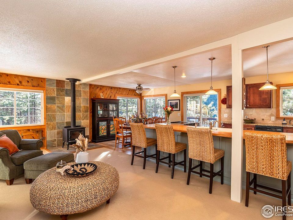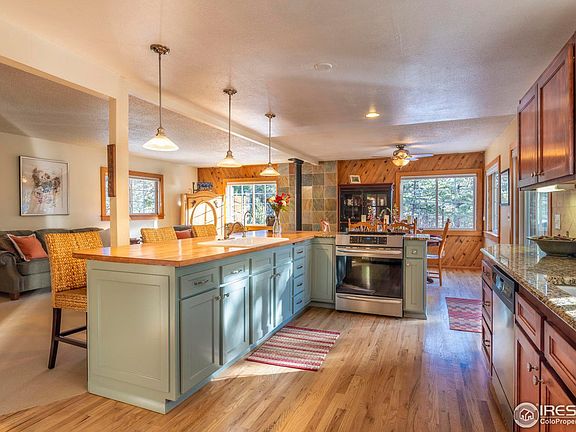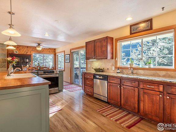 Ask about $10 K Buyer Incentive from the Listing Office. Nestled in the serene beauty of the Boulder Foothills, this eco-friendly home sits on a sprawling 2.6 Acre property, offering a tranquil retreat just 7 miles from downtown Boulder. The open floor plan seamlessly connects the Living, Dining, Kitchen areas & the south facing Deck, creating a warm and inviting indoor/outdoor atmosphere for entertaining. The well-appointed Kitchen boasts modern SS Appliances, Induction Range, Custom Cabinets by Thad Custom Cabinets, Granite & Maple Countertops, 2 Sinks & Spacious Pantry. Primary Bedroom opens to a private Patio with a Hot Tub via spacious French Doors. Bathed in year-round sunlight, this home is designed to embrace the stunning Mountain Vistas that surround it with large LoE Double Pane Fiberglass Frame Windows. This energy efficient residence features 1.98 kW Owned Solar PV Panels, & a super insulated structure to minimize utility bills. The expansive 2.6 Acre property offers endless possibilities for outdoor activities such as gardening, hiking & sledding. The location offers a flat driveway, county maintained roads, fenced Yard, and neighborhood Trails that connect to the Betasso Recreation Area. The attached 2 Car Garage and the 150 sf TUFF Shed provide storage space for outdoor gear, etc. Just a short drive to downtown Boulder, you can easily access the vibrant city life, cultural events, and outdoor activities that the area is known for, while still enjoying the peace and privacy of mountain living. Whether you're drawn to the allure of mountain living lifestyle, the eco-friendly features, or the proximity to both nature and city amenities, this move-in ready sunny mountain house offers a perfect blend of value, comfort, and tranquility. Recent upgrades & features include: 2017 Roof, New Hi Efficiency Furnace, Reverse Osmosis Water Filtration, Water Softener, 2 low emission Wood & Pellet Stoves, Owned Solar Panels. Septicsmart Cert issued Dec 2023