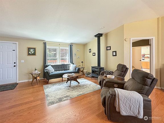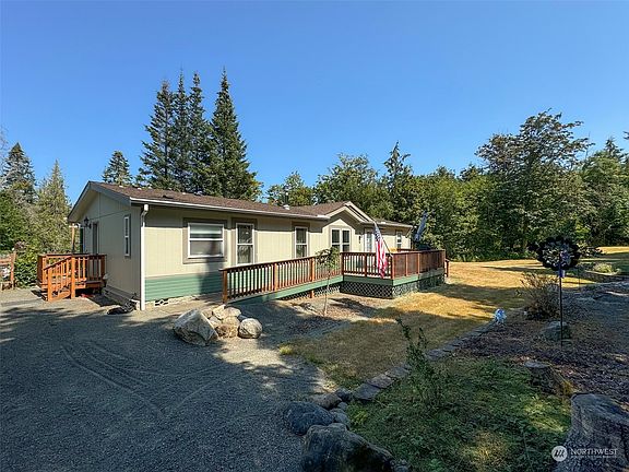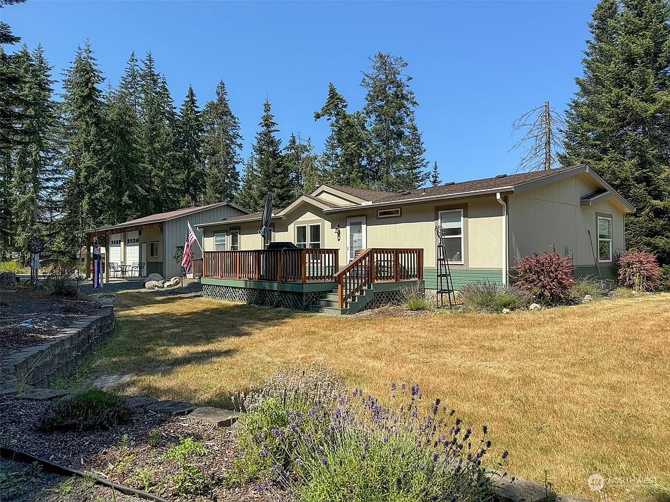 This home nestled on 2.8 acres between Sequim & Port Angeles features 3 bedrooms and 2 bathrooms, perfect for those seeking a peaceful retreat. Permitted furnished & rented ADU of 720SFT (1 bed 1 bath) offers immediate income or generational living options. The main house boasts a propane stove, heat pump, super filtration system, lux vinyl & laminate flooring throughout, and all newer appliances for your convenience. Step outside onto the newer composite deck and take in the serene pond and mountain views. The property also includes a detached 860SF garage with a 12x20 shop, carport & garden area with partially finished hobby space. Don't miss out on this unique opportunity to live in a tranquil setting with modern amenities.