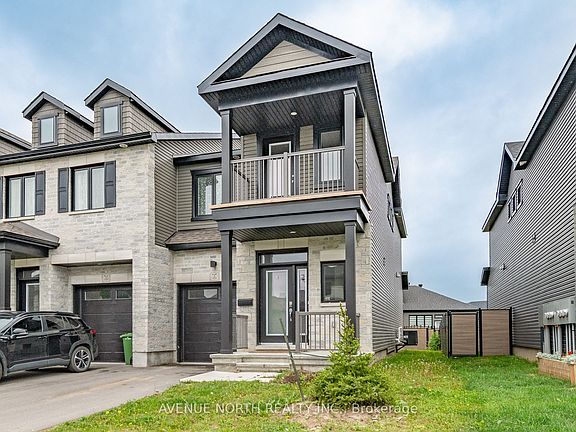 Welcome to 747 Namur Street, a stunning END UNIT townhome in the desirable community of Embrun. This Valecraft Lewis model offers over 2,100 square feet of thoughtfully designed living space, plus a harmonious palette of carefully selected, complementary finishes. The open-concept main floor showcases hardwood flooring, a welcoming foyer with a closet and built-in storage bench, upgraded pot lights, and a convenient powder room. The spacious kitchen truly is the heart of the home including modern finishes, ample cabinetry, a pantry, and an oversized island with breakfast bar. Upstairs, the spacious primary bedroom includes access to a charming, private balcony, perfect for relaxing and enjoying the view. You also have a 4-piece ensuite with double vanities and a glass-enclosed shower. Two additional well-sized bedrooms with their own walk-in closets, a stylish four-piece bathroom, and a conveniently located laundry area complete the second level. The builder-finished basement offers abundant storage, a bathroom rough-in, and versatile space ready to suit your lifestyle needs. The partially fenced backyard is perfect for summer enjoyment. Book your showing today.