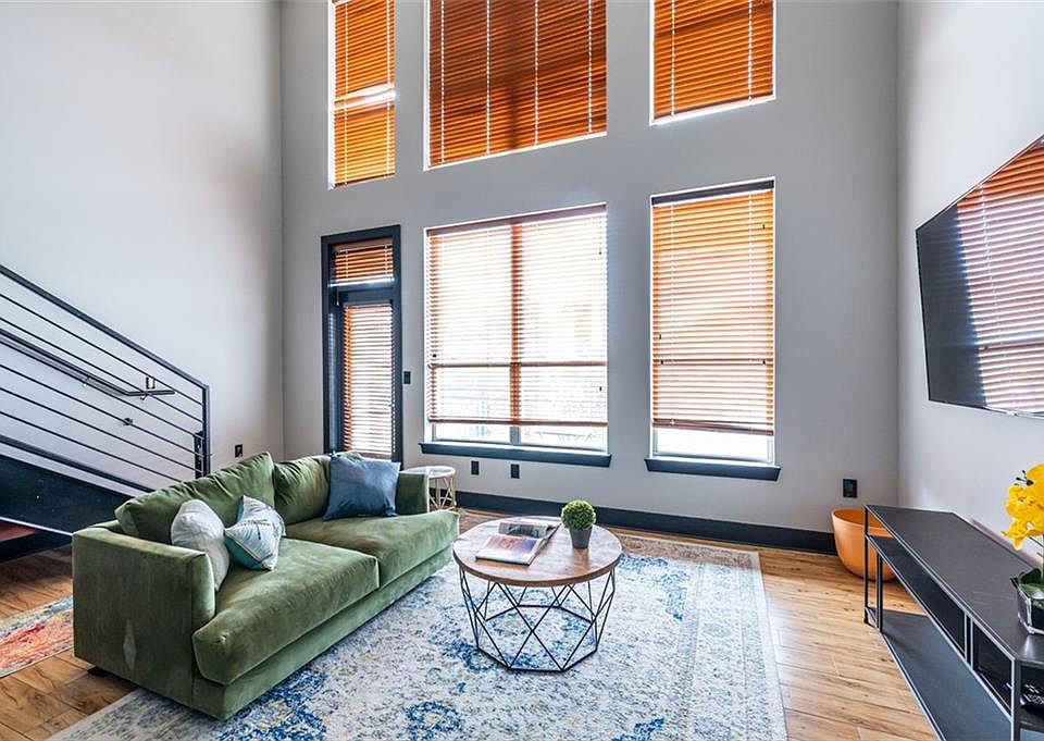 Beautiful Beltline-adjacent, top-floor loft with soaring ceilings, skyline views and abundant natural light! The Block Lofts is a gated community in the heart of O4W, close to shops and dining, with direct access to the Eastside Beltline Trail, a dog park, cybercafe, gym and salt-water pool. This Unit features a wall of windows overlooking an expansive terrace, an open floor plan, SS appliances, 20' ceilings, ceramic wood plank floors, an updated kitchen and freshly-renovated baths. 2 parking spaces (one inside a semi-private garage).