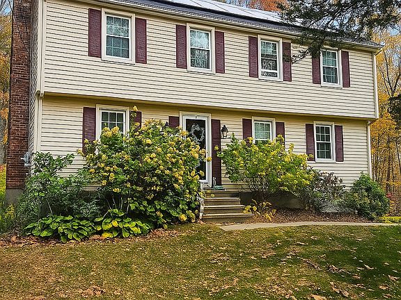 Tucked away on a quiet cul-de-sac in Guilford, one of the state's most sought-after towns, this classic Colonial offers the perfect blend of comfort, space, and timeless charm. Set on over 3 acres of beautifully maintained land, this 4-bedroom, 2.5-bath home is the ideal retreat for those seeking both privacy and convenience.  Step inside to discover an inviting layout with a cozy family room centered around a wood-burning fireplace, perfect for cool New England evenings. The updated kitchen features granite countertops, modern cabinetry, and a seamless flow into the dining and living areas, making it ideal for entertaining or casual family gatherings.  Upstairs, you'll find four spacious bedrooms, including a large primary suite with two walk-in closets and a beautifully updated bath. A cedar closet and walk-up attic provide exceptional storage and potential for future expansion. Outside, enjoy the best of Connecticut living with a large flat yard, patio, and expansive deck overlooking the garden area, perfect for hosting summer barbecues, relaxing in your private outdoor oasis, and viewing the beautiful autumn leaf changing.  Located within one of the state's top-rated school systems and just minutes from Guilford's charming town green, shops, and beaches, this home offers the best of both worlds: peaceful suburban living with easy access to everything you need.  Come experience the tranquility, space, and warmth this home has to offer.