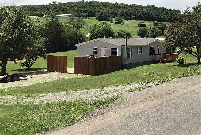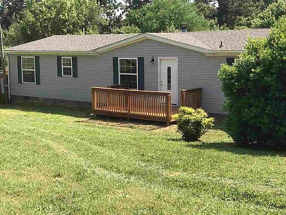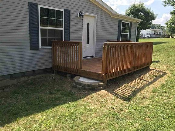 Reconditioned Doublewide with split bedroom layout. Home has been completely sheet rocked inside and newly painted with new hardwood floors in the Great Room and master bed room. New carpet in the two other bedrooms and new vinyl in Kitchen and baths. Wood fireplace in the Great Room. Tiled bathtubs with new white vanities. New kitchen cabinets with new countertops. Large deck at the back with nice workshop. Private patio off the kitchen. Directly across the street from Colley Farms.