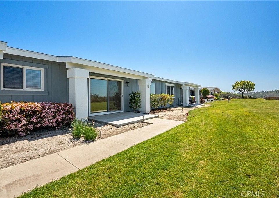 Enjoy ocean breezes in this wonderful 2-bedroom home in Oceana South #3, a vibrant 55+ community just minutes from the coast. Situated on a greenbelt with gorgeous westerly views offering spectacular sunsets, your new home has been freshly painted inside and out, with new vinyl windows, luxury vinyl plank floors throughout, and a beautifully remodeled kitchen with all new stainless steel appliances and gorgeous quartz countertops. Both bathrooms have also been tastefully renovated to match. An attached single-car garage and gated carport/patio are convenient amenities. Owners in Oceana South enjoy a host of amenities, including a pool, spa, community center, trails, and more. The HOA includes your cable, water, trash, and sewer. If golf is your passion, the Emerald Isle Golf Course is so close you could almost use your driver to get there. Don't miss this opportunity to make this property your home!