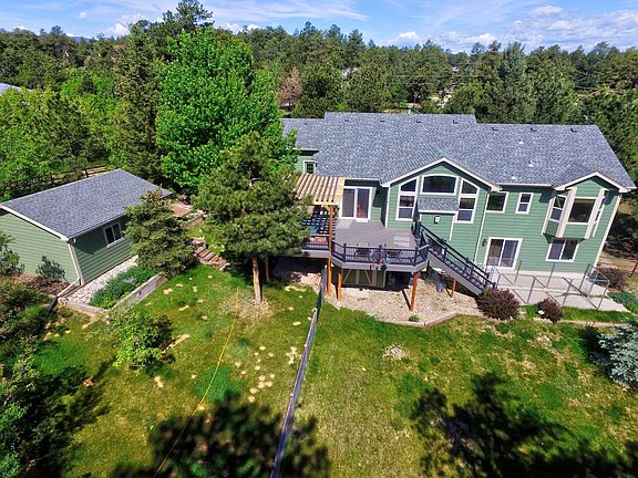 Nestled in the Pines of Larkspur is this lovely ranch home with its main level living, and finished walkout lower level. Comes not only with a 3 car attached garage, but a detached 20x20 heated workshop w/220V. New roof and private backyard deck were installed in 2017. Backyard is cross fenced for your pets. This extremely well maintained home offers soaring ceilings that brings in tons of natural lighting, and has 7 bedrooms for your expanding family. Spacious kitchen with granite countertops and double ovens, looks out to the vaulted great room and fireplace. Comfortable open floor plan with main level hardwood flooring, master suite and laundry. Large family room located in lower level with patio access out to the backyard. Nestled in a gorgeous mountain setting with a variety of trees, bushes & flowers. Conveniently located between DTC and Colorado Springs. Only 15 minutes to Castle Rock, with paved roads leading right to the front door. Come and experience this all for yourself!
