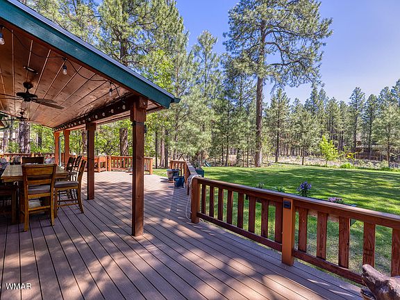 SIGNIFICANT PRICE IMPROVEMENT AND FURINITURE INCLUDED! 2500 sq ft log cabin on over 3/4 of an acre in Pinetop Country Club with recently updated kitchen and outdoor spaces! Interior features include 5 bedrooms plus loft, 3 bathrooms, updated gourmet kitchen with granite countertops and large kitchen island, stainless steel appliances, LVP in all the right places, two downstairs bedrooms and bathrooms including extra large master. Exterior features include a HUGE LOT with beautiful natural grass backyard, two BRAND NEW large covered Trex patios. Property is located on a private cul-de-sac lot close to golf and much more!!