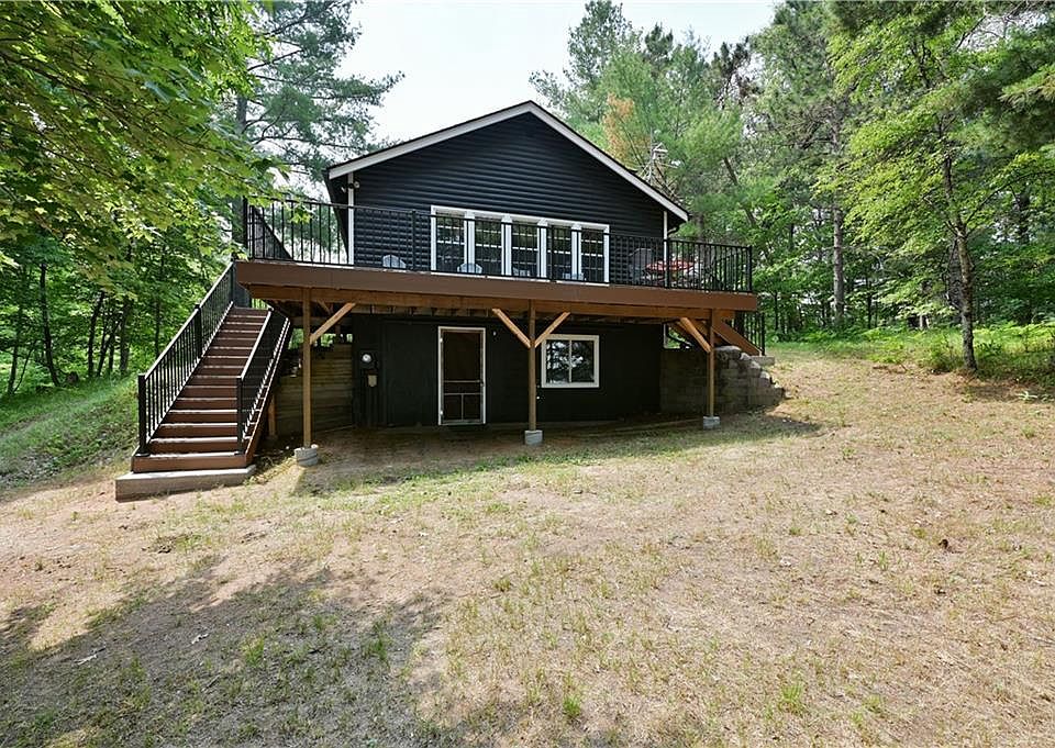 Escape to this charming 4 season half log sided 3 BR, 1.5 Ba cabin nestled in the woods on 2.17 acres with 954' of meandering frontage on Chicog Lake! This quaint and pleasantly inviting cabin is well kept with an efficient floor plan and unmatched privacy. Being sold completely turn-key with all furnishings, kitchen items, linens, dock, etc. The interior is clean with updated appliances, woodburning stove, forced air, and a lower level walkout basement with great finishing potential. The large lakeside deck new in 2022 with composite decking will become your favorite location on the property to enjoy spectacular elevated views of the lake. Sand frontage with newer dock. New roof and fresh exterior paint in 2022.Close to county land, ATV & snowmobile trails & canoeing on the Namekagon River. This is one you won't want to pass up!