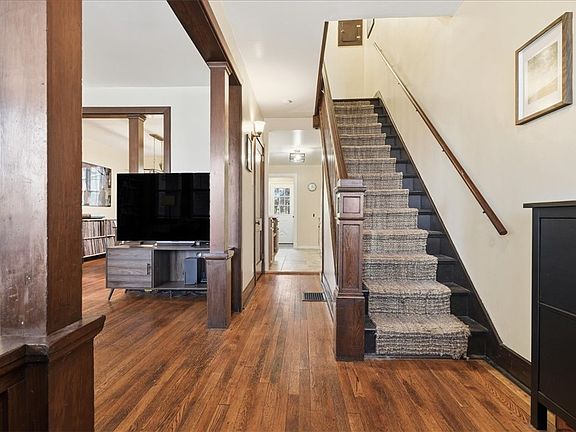 Stunning original finishesNew back deckRefreshed bathsFirst-floor laundryHardwood flooringOpen and spacious kitchen