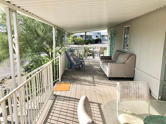 WATER VIEW! Lovely deck surrounds this charming furnished, turn key, park model in ALL AGED, gated community of Sky Valley Resort. 13 sparkling hot spring mineral pools, pickleball courts, tennis, walking trails, cafe, library, fitness center with community events, daily activities and exercise classes.Call for a showing! 760-218-9974
