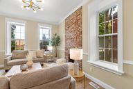 Original brick fireplacesQuartz countersPrivate rear parkingStylish lightingHigh-end kitchenNewer windowsLight-filled rooms
