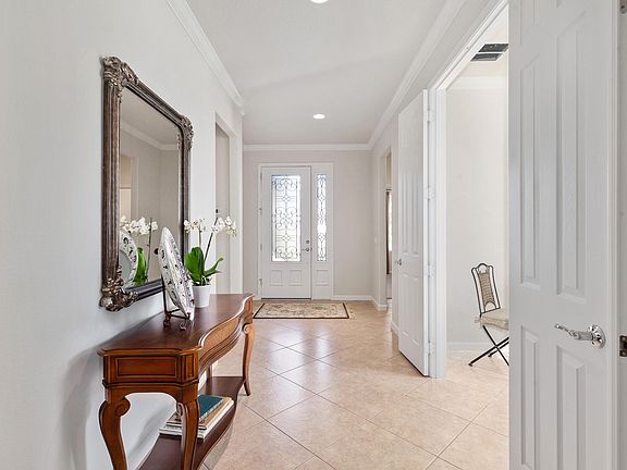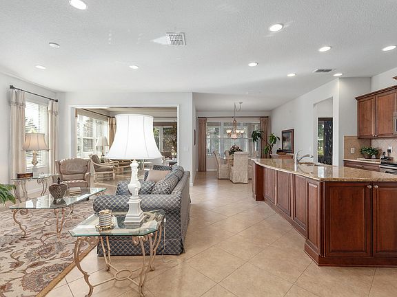 LOVELY MOVE-IN READY HOME IN STONE CREEK. Great attention to details in this 2 bedroom plus den home. 18'' ceramic tile installed on a diagonal in all areas except guest bedroom. Over sized garage holds 2 cars and a golf cart. Custom glass entry door, upgraded maple glazed cabinets with crown molding, stacked cabinets, decorative panels on island and roll-out shelves all with beautiful granite. Upgraded stainless steel appliances and washer and dryer. Enclosed lanai, water softener and so much more. A must-see at a great price on an open corner lot. Furniture available for sale separately. Taxes do not reflect homestead exemption.