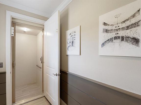 Enjoy resort-style living in this elegantly upgraded 3-bedroom, 2-bath condo with an oversized den. This move-in ready upper-level residence features a private in-unit elevator from the garage directly to the main living area, providing everyday ease and convenience. The open-concept floor plan provides panoramic views of the golf course practice green and club house from the kitchen, dining area, living room, and lanai—perfect for enjoying sunsets and peaceful mornings. The spacious master suite offers serene golf course views, dual closets, a private water closet, dual vanities, and a generously sized walk-in shower. Two guest bedrooms are ideally situated on the opposite side of the home with a full bathroom in between, providing privacy and comfort for guests. The oversized den/study adds flexibility for a home office, media space, or additional sleeping area. Refined upgrades throughout include crown molding, detailed ceiling trim, designer lighting, and more. The kitchen features a walk-in pantry and a gas cooktop—ideal for any home chef. A spacious laundry room includes built-in cabinetry and a utility sink for added convenience. The freshly sealed two-car garage offers plenty of storage and a clean, polished finish. All properties are currently being freshly painted, enhancing their move-in ready appeal. The home feels exceptionally private, quiet, and relaxing, with abundant natural light and tranquil views. Country Club East is a gated community with amenities including three pools, a fitness center, and a clubhouse. Conveniently located near an abundance of shopping, dining, both Sarasota and Tampa airports, as well as some of the nation’s most beautiful beaches. Optional membership to the Lakewood Ranch Country Club offers access to four golf courses, three restaurants, pickleball, tennis courts, and more. This is Florida living at its finest—luxurious, low-maintenance, and perfectly located.