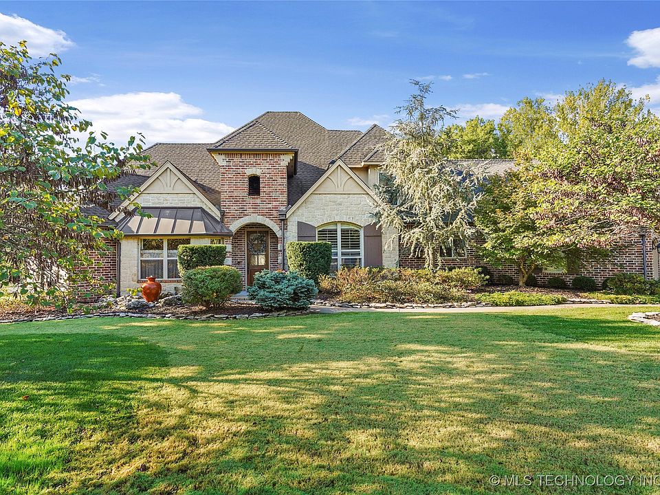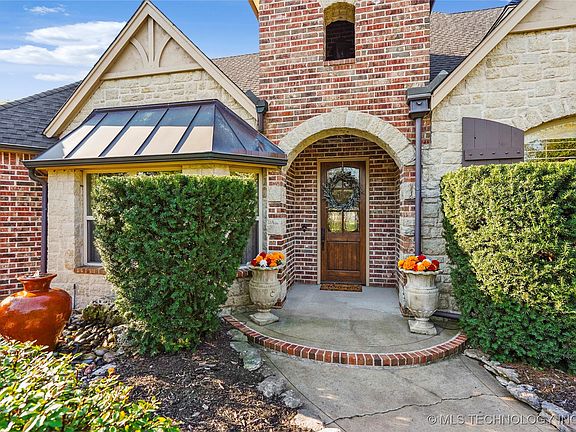 Grand custom home on a beautifully landscaped 1.3-acre pond lot in a quiet, no-through-traffic cul-de-sac, located within highly rated Broken Arrow Schools and just 30 minutes from downtown Tulsa. This smart home features high-end finishes throughout, a spacious and functional floor plan, private formal dining, dedicated study/media room, generous entry foyer, and a walk-in pantry. The downstairs primary suite and open living areas offer serene pond views. Upstairs includes two large bedrooms and an oversized 4th bedroom pre-plumbed for an additional bath. Abundant storage with walk-out attic access. Exterior highlights include a new lifetime-warranty roof (Nov 2023), smart sprinkler system connected to a weather station, and pre-wiring for a hot tub. Peaceful, private, and move-in ready!