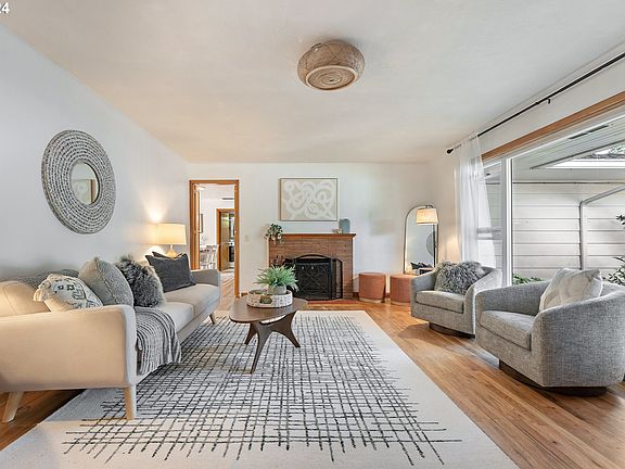 Opportunity abounds with this charming 1-level mid-century ranch on over 1/3 acre corner lot in the heart of Garden Home neighborhood! Original hardwood flooring in the living, dining, and both bedrooms. The fireplaces in the living and dining rooms provide decorative charm and could be restored to wood-burning. Enjoy sliding doors from the dining room to the back patio for easy entertaining. The updated kitchen includes a gas range, stainless appliances, and quartz countertops. The generous oversized lot includes mature trees, a fully fenced backyard, large walk-in toolshed, and plenty of space for gardening, chicken coop, pets, entertaining, and/or a play structure(s). The garage has been partially converted into a bonus/flex room ideal for a home office/work space, shop, gym, crafting, storage; or can be removed to restore the garage space to its full size. Additionally there is an oversized parking pad suited for a 3rd vehicle, boat, RV, and more! Less than 1/4 mile to coffee, recreation center/preschools, parks, Garden Home Public Library, grocery, multiple shops/amenities, the Fanno Creek pedestrian trail, bus line/public transit, and with easy access to highways, downtown Portland, Beaverton, and Tigard. Unincorporated Washington county taxes - Beaverton School District - location is everything! Being sold "as-is", seller to make no repairs - bring your vision to make it your own!