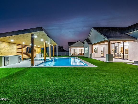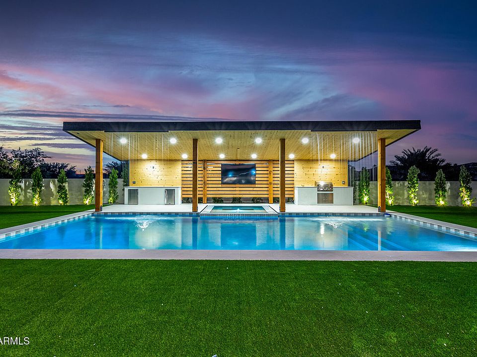NEW HOME! Step into a world of refinement with an open floor plan that seamlessly integrates spacious living areas. Kitchen with all upgraded appliances, space, & functionality. Entertain in style with a gorgeous backyard, pool, & large hot tub. Ramada with BBQ Grill & fridge, spacious casita with a kitchenette, bedroom & full bathroom. Several quaint areas to entertain small groups or open up two large sliding glass doors from the great room to the backyard and one to the front courtyard with a fire pit for Grande parties. Escape to the luxurious master suite featuring a large walk in shower with double heads & a stand alone tub. And the relaxing sound of a water fountain just outside of the master suite. Every bedroom has a full bath and walk in closets.