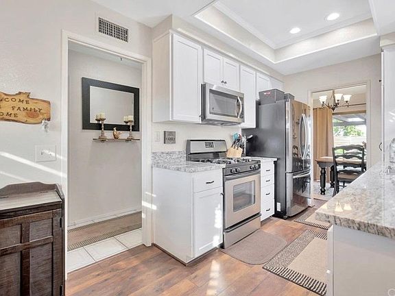 Beautiful single story house located in very quiet area. Close to schools, parks, shopping and other amenities. This home is in great condition. Just got fresh interior paint, tall vaulted ceilings and new flooring throughout this home. The meticulously clean and completely UPDATED kitchen with new granite countertops, top of the line cabinetry, stainless steel appliances etc... bathrooms are newly updated with beautiful vanities and flooring. It also has a separate indoor laundry room. Perfectly landscaped with private backyard.