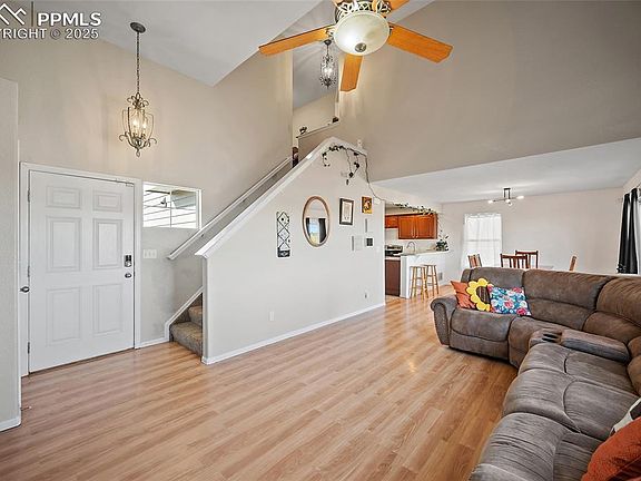 You’re invited to explore this wonderful two-story home located in the desirable Cross Creek neighborhood of Fountain. This 3-bedroom, 2.5-bath home with a 2-car garage is ready for its new owners. Step through the covered front porch into a spacious living room featuring vaulted ceilings, wood-laminate flooring, and a ceiling fan for comfort. The open-concept layout flows seamlessly into the dining area and kitchen, which includes a breakfast bar, kitchen appliances, a pantry space, modern lighting, and a built-in filtered water system at the sink. Upstairs, you’ll find all three bedrooms, each with ceiling fans. The Primary suite includes an adjoining full bathroom and a walk-in closet, while the two additional bedrooms offer comfortable, ample space. From the dining area, a sliding door opens to a wood deck perfect for relaxing or entertaining. The deck overlooks a tiered backyard with rock accents. Both the front and back yards are beautifully landscaped, and the front yard is enhanced by matured trees adding charm to the curb appeal. The unfinished basement sits on a solid foundation and includes a washer and dryer. With its open layout, the basement offers endless possibilities to create a family room, home gym, theater, or additional bedroom and bath to suit your needs. Recent updates include a roof installed in 2024, water heater and furnace added in 2021, a Radon mitigation system, and an Interceptor clean water filtration system. This home is conveniently located near grocery stores, restaurants, and shops in Fountain. Outdoor enthusiasts will love being close to Cross Creek Regional Park, which offers walking trails, open space, a playground, BMX tracks, and a pond. It’s also just a short five-minute drive to Fountain Creek Regional Park and Nature Center. With its excellent location and a quick commute to Fort Carson, S. Powers Blvd, and I-25, this home offers comfort, convenience, and potential in one perfect package. Come see it and make it your own!