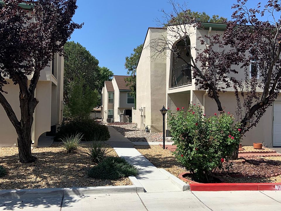 Beautiful townhome in NE heights with a pool and private court yard. One block to the Arroyo del Oso golf course. Great schools, quiet neighborhood close to shopping, malls and parks. One car garage attached to unit with a storage area. Water paid, gas and electric paid by tenant