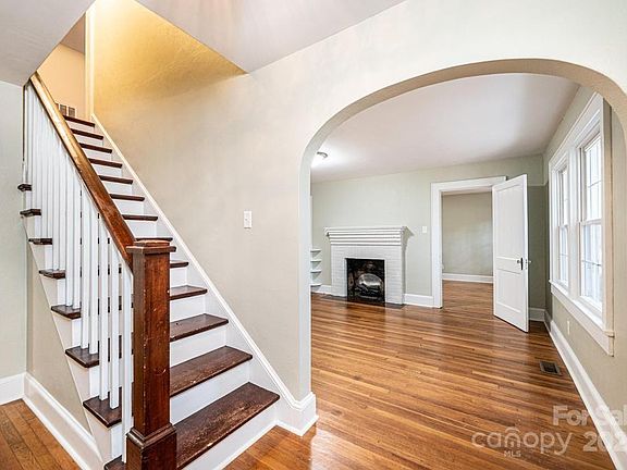 Great location! 1940's charm! Move in ready! This quaint home is conveniently located within walking distance to downtown Hickory, Lenior Rhyne University and recreation areas. On your back deck you can hear the sounds from the Saturday Fall football games at LR. And even hear the music from Friday nights Music Under the Sails in downtown Hickory. To live in a city that's alive and well and be able to participate in it with a short walk or bicycle ride - that's special! The primary bedroom and bath take up the whole right side of the house. Big enough to act as a bedroom and have a sitting area! The home has an easy flow about it. In the living room, display your favorite collection of books and/or knick knacks on the built in bookshelves. Dining room has a beautiful light fixture and would make the perfect place for dinner parties. From the dining room continue into the kitchen and eat in area. All appliances stay! Main level also boasts a guest bedroom, a full guest bath and the laundry closet. Stackable washer and dryer stay! Original, 1940's hardwood floors throughout most of the main level! Love that! Upstairs has the third bedroom, a half bath and some flex space that can be used as an office, a 4th bedroom or a TV room!! Fenced in backyard. Backyard lighting and shed stay. Come and take a look.