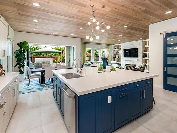 Welcome to this exquisitely crafted single-level model home in the heart of Leucadia, where luxurious design effortlessly blends with the relaxed elegance of coastal living. With over $492,000 in custom upgrades, this 3-bedroom, 2.5-bathroom residence, complete with a dedicated office, epitomizes modern sophistication and timeless design. Step inside to be greeted by rich wood and tile floors, and striking wood plank ceilings that elevate the expansive, open-concept great room. Bathed in natural light, the space showcases custom bifold sliding glass doors, inviting seamless indoor-outdoor living off the kitchen and dining areas. The gourmet kitchen is a chef’s dream, featuring quartz countertops, a grand island perfect for entertaining, and top-of-the-line stainless steel appliances, including a six-burner gas range. A large walk-in pantry adds both charm and functionality, offering ample storage and a built-in wine cooler. The great room is anchored by a custom brick fireplace, bespoke built-in shelving, and a wall of windows allowing the natural light to flood in. The primary suite is a luxurious retreat, boasting dual sinks, a walk-in shower, and exquisite tilework that evokes a spa-like ambiance. A Jack-and-Jill bathroom connects the secondary bedrooms, ideal for family or guests, while a versatile home office with barn doors offers both privacy and style. Completing the thoughtful layout is an oversized laundry room with upgraded cabinetry and a deep utility sink. Every detail of this home has been meticulously curated, from sleek barn doors and custom window treatments to smart home technology that includes a tankless water heater, reverse osmosis system, and pre-plumbing for a soft water system. The finished garage, with epoxy flooring and overhead storage, adds an extra layer of convenience. Step out to your private patio, where a built-in fireplace, a steel pergola, and tranquil fountain create the perfect setting for al fresco dining or quiet evenings under the stars. Located just 1.2 miles from the beach and the vibrant Leucadia village, this home captures the essence of Southern California living. With easy access to the 5 freeway, San Diego Botanic Garden, and Encinitas Ranch Golf Course, you’ll enjoy the perfect blend of privacy and convenience. More than just a home, it’s a chance to embrace the quintessential California lifestyle, where every detail has been thoughtfully crafted to provide a life of luxury, comfort, and effortless style. Don’t miss the opportunity to make this coastal gem your own.