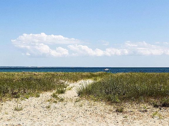 This signature, fabulous, bright and sunny, contemporary house located in the east end of Provincetown is constructed and being offered by the Papetsas Building Company family. Since 1983 the Papetsas name is recognized in Provincetown and the Outer Cape as one signifying quality and artistry. You'll love coming home to this beautiful, well-built and updated spacious water view home across from Cape Cod Bay with gorgeous views of the Provincetown shoreline and rare deeded beach access directly across the street. The house is architecturally stunning with an open, airy floor plan, magnificent Andersen slider set-ups as well as several large Andersen floor length window units. The front foyer entrance with custom Morgan door with leaded glass sidelites and transom opens into the spacious sculptured cathedral ceiling living room with floor to ceiling wood burning used brick fireplace built by master mason Don Carboni. There is a Vermont Castings black Resolute wood burning stove in family room with wet bar. Double and triple banked sliders from the living room and kitchen open to the sunny south west facing wrap around deck overlooking lush gardens and the Bay. The well-planned, updated chefs kitchen features an island, plenty of storage and work space, ideal for entertaining!! There are distressed black Scandia cabinets with stainless double wall ovens, dishwasher, fridge with water and ice maker, and ceramic glass cook top and microwave. There is a cozy TV room off the kitchen or can be used for a formal dining room. Walk up to the second floor and across the open rail bridge overlooking the sunken living room and foyer to the master bedroom with beautiful south west facing water views, sculptured cathedral ceilings, closets galore, and en suite bath with whirlpool tub, shower, and marble tile wainscoting. The second sun filled bedroom also boasts beautiful water views. The cozy third bedroom is north facing. There is a full bath remodeled with cottage wall boarding, custom tile shower, and a double vanity between these two bedrooms as well as the laundry center and large linen closet. Additionally, there is a spiral staircase leading to the third level which houses a Brunswick pool table and water views. FEATURES NEWLY REFURBISHED: Oak hardwood flooring, plumbing fixtures and valves, tiled showers, electrical specialty fixtures, interior and exterior paint and the lower level versatile bonus area perfect for home office, entertainment room, or home gym with slider to pallet deck, plenty of storage and access to the garage. Just added photos of the space, approximately 600 sq. ft, totally repainted floor to ceiling and brand new wall to wall carpeting. The heating and cooling system is oil fired hot air and baseboard as well as Fujitsu AC wall units in the two smaller bedrooms. The yard is large with sod lawn, mature landscaping, and parking. The property has built-in irrigation system and well and central vac. We have freshly painted the interior of the home and entire exterior. This beautifully maintained home offers quality private space for a quiet read or nap yet is designed for entertaining large groups of friends.