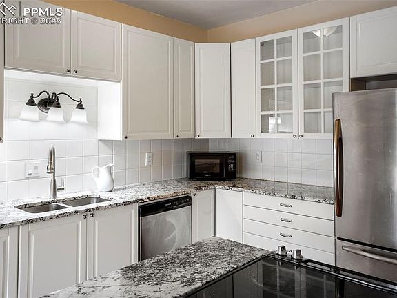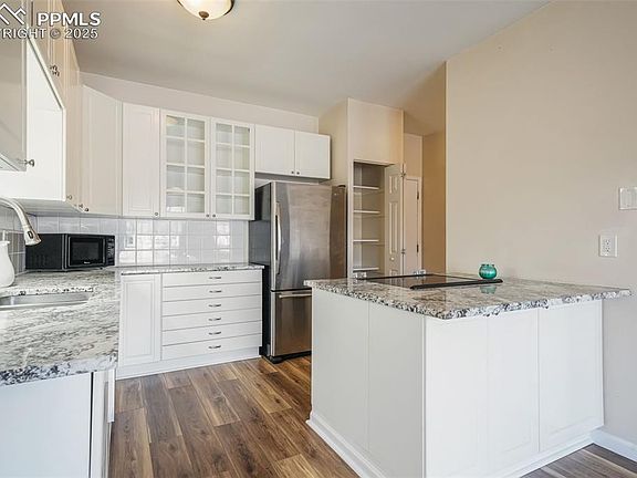 New flooring since first listed. In the shadows of Cheyenne Mountain, this gorgeous townhome is ready for its next owner! As you walk up to the front door, you’ll appreciate the large front patio this end unit provides. Inside you’ll feel the bright light this open floor plan provides. The kitchen has been updated with gorgeous cabinetry, newer appliances and ample storage. The primary bedroom upstairs is spacious and has a walk-in closet, updated full bath with dual sinks. The other bedroom has plenty of room to live in or work in. Rare two car garage with storage is a gem that’s hard to find in this area of town. Strong rental history. Minutes from the Broadmoor, Cheyenne Canyon and the Cheyenne Mountain Zoo. Come check this one out today!