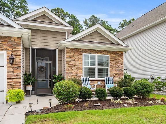 Welcome to 748 Flowering Branch Ave., a beautifully maintained 3-bedroom, 2-bath ranch home in the desirable Hidden Brooke community. Featuring 1,736 heated sq. ft. and 2,419 sq. ft. under roof, this home showcases an open floor plan with abundant natural light, vaulted ceilings, and expansive sliding glass doors leading from the great room to a stunning 3-seasons room with EZE-Breeze windows and tiled floors. The kitchen boasts quartz countertops, new hardware and pendant lighting, a large island, natural gas stove with vented hood, and extra counter space perfect for entertaining. The primary suite includes a tray ceiling, walk-in closet, and en suite bath with walk-in shower, dual linen closets, updated fixtures, and new mirrors. Additional highlights include a spacious laundry room (with added cabinetry), screened front patio, beautifully landscaped yard complete with irrigation system, back patio, private yard with wooded views, and a storage shed with electric. The finished garage with epoxy floor offers abundant storage. Conveniently located minutes from schools, beaches, and shopping, this home blends comfort, style and convenience in a prime location.
