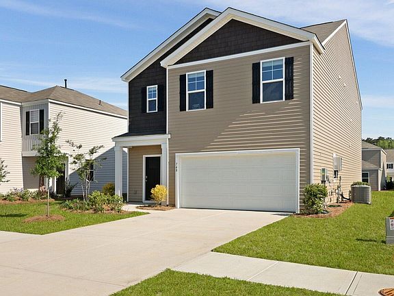 This Robie plan is located on a marvelous fully sodded homesite and offers 5 bedrooms, 3 full baths with a 2-car garage, designed with comfort and easy living in mind. As you enter the home you are welcomed with a large foyer. Entering the great room we find the dining area, family room and a wonderful cook's kitchen are all together for open living. This kitchen features ample cabinetry, granite counters, a large kitchen island with room for 4 counter height barstools plus there is a huge walk-in pantry. The stainless-steel appliances include a 5-burner gas range, microwave, dishwasher, and even a refrigerator! The first-floor features wood inspired flooring that's beautiful and wears like iron.There is also a guest room and full bathroom on the main level - great space for relatives who can't do the stairs! At the top of the stairs is a loft space that is a perfect space to use how you choose. The owner's suite is enormous and has a large walk-in closet with a window for natural light. The owner's bath has a second closet, private toilet, dual vanities, and a huge 5-foot-wide walk-in shower. There are 3 secondary bedrooms at the back of the home and a 3rd full bathroom with double vanities. The laundry room is thoughtfully located on the 2nd level with all the bedrooms for efficiency and convenience! Pine Hills in Cane Bay, Summerville, offers a serene suburban lifestyle. Nestled amidst lush landscapes and elegant homes. Residents enjoy nearby parks, shopping, and dining, making it a family-friendly haven with a charming southern atmosphere. Amenities include 3 pools, with a 2-story water slide. Nearby is the largest YMCA on the East Coast, and the community offers easy access to I-26. All new homes include D.R. Horton's Home is Connected® package, an industry leading suite of smart home products that keeps homeowners connected with the people and places they value most. This smart technology allows homeowners to monitor and control their home from their couch or across the globe. Products include touchscreen interface, video doorbell, front door light, z-wave t-stat, and keyless door lock all of which are controlled by an included Alexa Dot and smartphone app with voice! Call to schedule your showing today and start envisioning your new life surrounded by nature's beauty! Directions: From Hwy 176, Turn onto Cane Bay Blvd. At the second traffic circle, that the third exit onto Fair winds Blvd. At the traffic circle take the first exit onto Horizon Ridge Drive. Turn right at Lake Ridge Drive. Turn left at Ivory Shadow Rd. Turn right onto Sweet Ramble Way, left onto Long Bluff Road, the home is on the right.