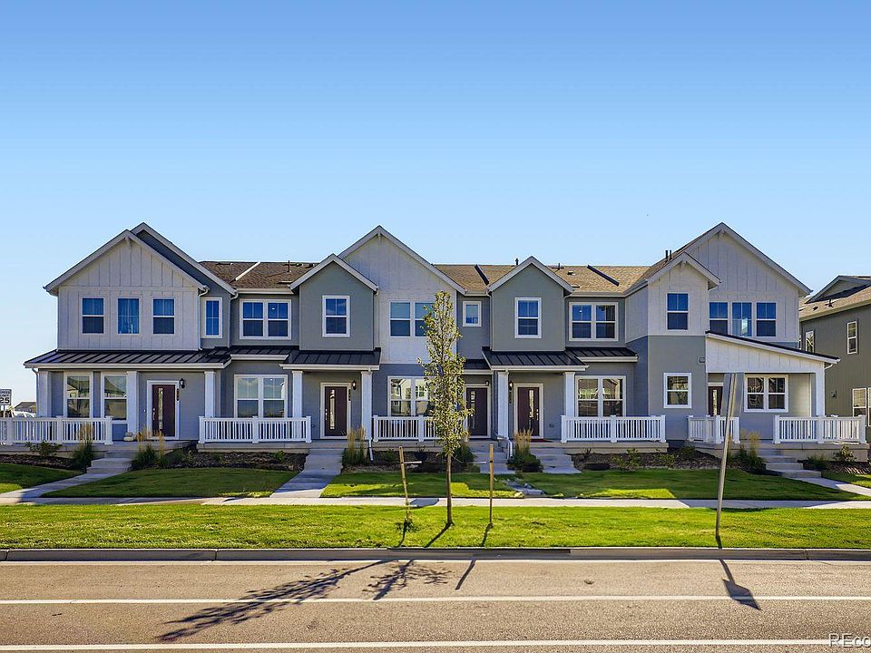 Low maintenance living in the gorgeous new Sky Ranch community. Just lock up and go. This brand new 2-story townhome in a 5-plex features 2 bedrooms, 2.5 baths, great room, kitchen, upper laundry, loft, 2 car attached garage (rear alley entry) and conditioned crawl space. Gorgeous finishes and upgrades throughout including luxury vinyl plank flooring, stainless steel appliances, slab quartz counters and more. Builder provides the latest in energy efficiency and state of the art technology with several fabulous floorplans to choose from. Energy efficiency, and technology/connectivity seamlessly blended with luxury to make your new house a home. Homes with an alley are subject to an additional $27 per quarter. Current monthly fee subject to change. Photos are model only and subject to change.