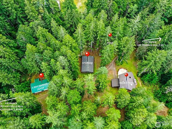 Escape to your personal oasis in the heart of the beautiful Seabeck community. This 5 acre property offers endless possibilities for those looking to get away from it all. This custom 2230 sq ft one owner home with open layout and vaulted ceilings has all the charm to create lasting memories. Carefully cared for through the years this 3bdr, 2bath home is waiting for you to create the next chapter. With a heat pump and fireplaces throughout you can weather the seasons comfortably all while enjoying the northwest sunshine with floor to ceiling windows. Two separate garages/shops on the property offer the versatility to create or store your outdoor toys. Come out and see for yourself why Seabeck is so special, you will love this home!