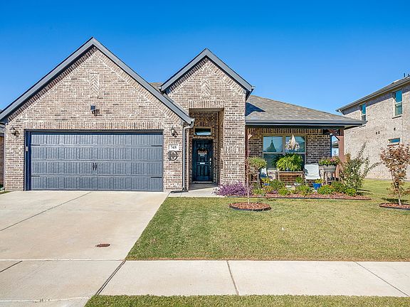 SHOWINGS WILL BEGIN SATURDAY AT 12 PM! Welcome Home! Step into this stunning 3 bedroom, 2 bath home built in 2022, featuring a beautiful blend of brick and siding. The open concept living and dining area is perfect for entertaining, highlighted by tall ceilings and an eye catching all white kitchen with granite countertops. The kitchen has a huge walk in pantry! The spacious primary suite includes a dual vanity and a walk-in shower, offering a touch of luxury and comfort. Enjoy tile flooring in the main living areas and cozy carpet in the bedrooms. Relax on your covered patio with the added bonus of no back neighbors!! Perfect for grilling and enjoying the beautiful sunsets in the backyard. Don’t miss your chance to make this beautiful home yours! Schedule your showing today!