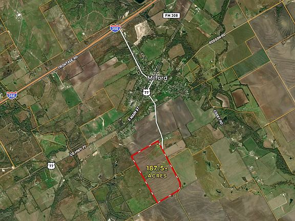 187.5± acres of land with an old farmhouse and a barn with thousands of feet of road frontage on S FM 308, located a mile and a half from Interstate 35. This property will serve as an excellent investment while simultanously allowing you to run cattle or grow crops. The farm is generally level with no trees, has no creeks or FEMA flood, and has no zoning restrictions. An Ag exemption is in place with minimal property tax implications. Site has co-op water and electricity on site. A new surveyed has been ordered but is not yet complete.