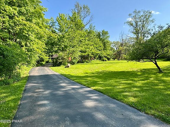 Tucked away on over 6 acres of peaceful countryside, this warm and welcoming contemporary ranch home invites you to unwind with easy one-level living. A long, private drive leads you to a spacious retreat where nature greets you from every window. Inside, you'll find three comfortable bedrooms and two full baths, including a primary suite designed for relaxation--complete with a walk-in closet and a deep soaking tub where you can let the day melt away. The heart of the home is the great room, where rich knotty pine walls, soaring ceilings, and streaming natural light create a rustic, comfortable setting perfect for gatherings or quiet evenings in. Just off the kitchen, a convenient laundry room adds everyday ease, while a bonus loft room offers flexible space for a home office or quiet retreat. Step outside to a peaceful world of your own--lush front lawn, a backyard that blends into woods and meadow, a garden area ready for your green thumb, and a generous deck and patio for summer barbecues and star-filled nights. Practical touches like a full basement with workshop, utility space, and a root cellar add function to charm. A two-car attached garage, paved driveway, and automatic standby generator provide comfort and convenience in every season. All of this privacy and natural beauty is just a short drive from interstates, shopping, and Lake Wallenpaupack.