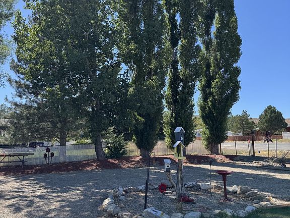 Well-kept 3-bedroom, 2-bath manufactured home in Spring Creek with front and back landscaping, including established fruit trees and plants. Recently painted exterior adds a fresh look, and a pellet stove provides cozy warmth in the winter. The sellers just replaced the igniter on the pellet stove. The yard is fully fenced with gates at the front and back for easy lawn care or keeping pets secure. The owner put in an RV hookup station next to the home for easy convenience. There's a storage shed to keep yard tools and outdoor equipment in to stay with the home.