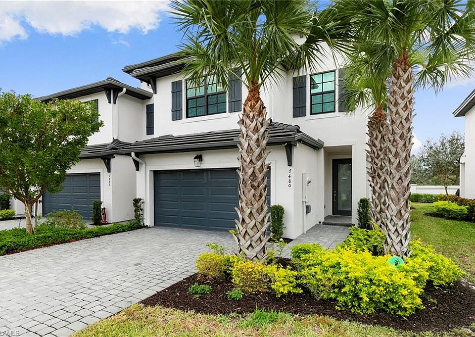 Welcome to 7480 Rockefeller Drive, located in the gated community of Vanderbilt Reserve. This gently lived-in, immaculate END UNIT townhouse offers 3 bedrooms, 2.5 baths, and a 2-car garage in the heart of North Naples. Whether you're searching for a primary residence, second home, or investment property, this 2023-built home checks every box. Loaded with upgrades, the home features impact windows and doors, upgraded appliances, enhanced lighting throughout (including under-cabinet lighting), dimmer switches on all lights, additional outlets, garage electric vehicle charger, and extra padding under the upstairs carpet. You’ll also find upgraded flooring, wood cabinetry, a frameless shower door, and extra added storage under the stairs in the garage. Additional highlights include ceiling fans in every room and a security system for peace of mind. For added convenience, the home is partially furnished, and all TVs convey with the sale. Perfectly located—just 15 minutes to beautiful beaches, minutes to grocery stores, restaurants, Founders Square, Mercato, and 25 minutes to RSW. Move-in ready, meticulously maintained, and in one of Naples’ most desirable areas.