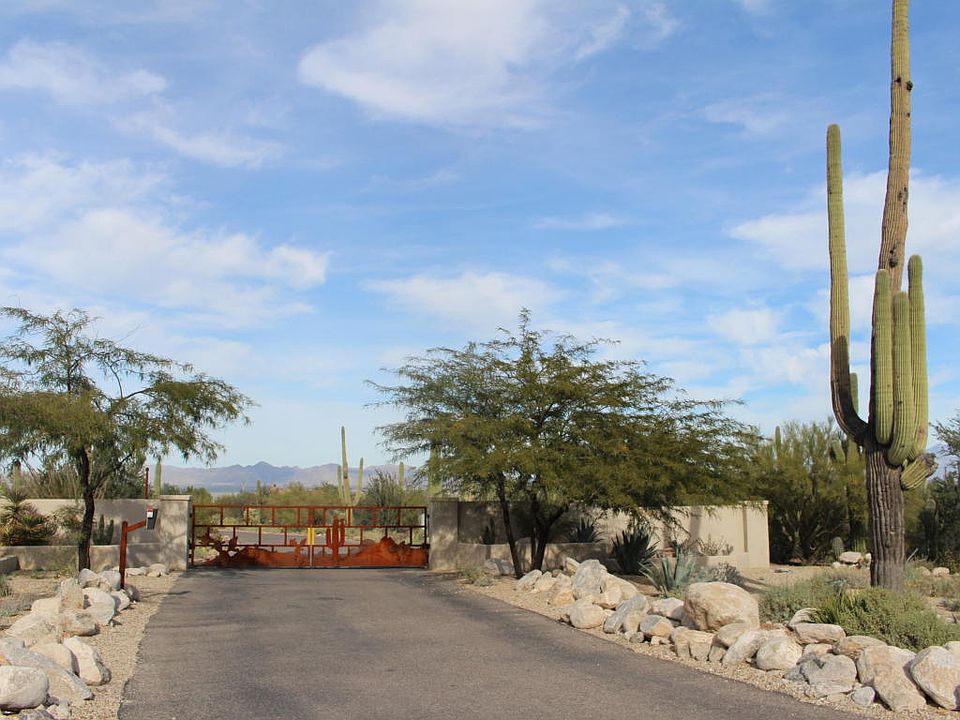 Stunning parcel with incredible views in small beautiful gated community of 11 upscale custom home sites. Views in every which direction, Tucson Mountains, Catalina Mountains, City of Tucson. Glorious positioning and private setting surrounded by stately, beautiful custom homes. Lush setting with dense desert vegetation including LOTS of saguaros. Easy build site and one you'll want to come home to... and possibly never leave! Plans for a 4400+ sf home have been completed. Great design and available for review and consideration. All the hard work has been done here! Ready to build NOW.