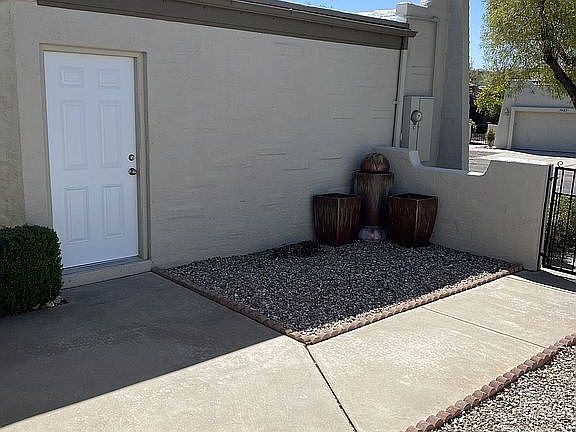 UNDER CONTRACT Will work with Buyer’s Agents for maximum 2.5% commission fee. Beautiful townhome in sought-after Sabino Canyon! Three Bedroom, Two Bath, Two Car enclosed garage 1437 sq feet home located in private Quail Canyon Subdivision on 0.11 acres. Enjoy mountain views from a serene, resort-like backyard with water fountain and natural gas firepit features as you soak in the above ground 5-seat jacuzzi on the extended covered patio. New luxury vinyl wood flooring and new carpeted bedrooms, new granite countertops and fixtures in Kitchen and Master bath with double undermount sinks. NEW central heat (gas) and air (2019), water heater (2020), elastomeric roofing (2022), and Skylights (2022). All stainless steel appliances with gas stove in Kitchen. Den features a wood-burning fireplace. Community pool and spa. All the amenities with low maintenance! Home will be sold with the following furnishings: washer/dryer, two fully furnished bedrooms, partial furnishings in Den, Living Room, and patio with private jacuzzi. NO artwork/décor, antiques, or specialty furniture included. Wall-mounted televisions negotiable.