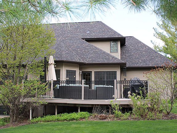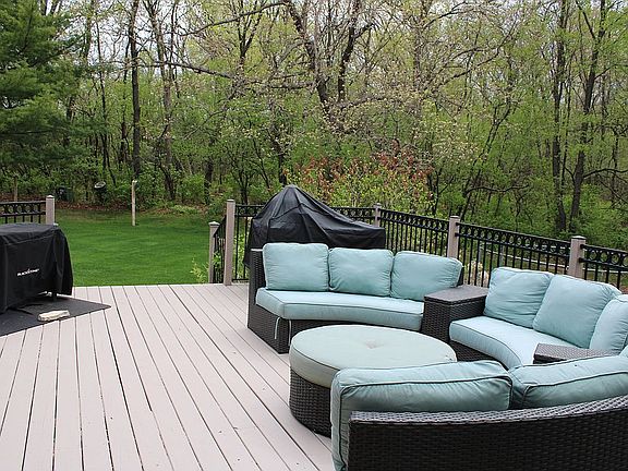 Luxury custom home in Beautiful Promontory Ridge with approx 3700 sq ft of living space. New Roof in spring of 2021 w/ transferrable warranty! Lg Foyer leading to Dining Room & Great Room. Large Eat-In Gourmet Kitchen w/ Breakfast Bar with flooring, Custom Maple Cabinets w/ Granite counter tops, Stainless steel appliances, including gas cooktop, microwave, refrigerator and dishwasher. Great Room features cathedral ceiling with gas log fireplace. Master Suite features 6 ft soaker tub with Jets and heater, 4 ft Walk in double-tiled shower with two heads, Large vanity with double sink. Large-walk in closet. Finished LL includes Family Room, Wet bar/kitchen area, Bedroom with walk-in closet, huge storage area, Walkout to patio with firepit. Custom Closets. Solid Core 6-Panel doors. Hickory Floors in kitchen and dining room. Beautiful, private, wooded lot with irrigation system. Cul-de-Sac Location. Prairie Hill/ Hono Schools.